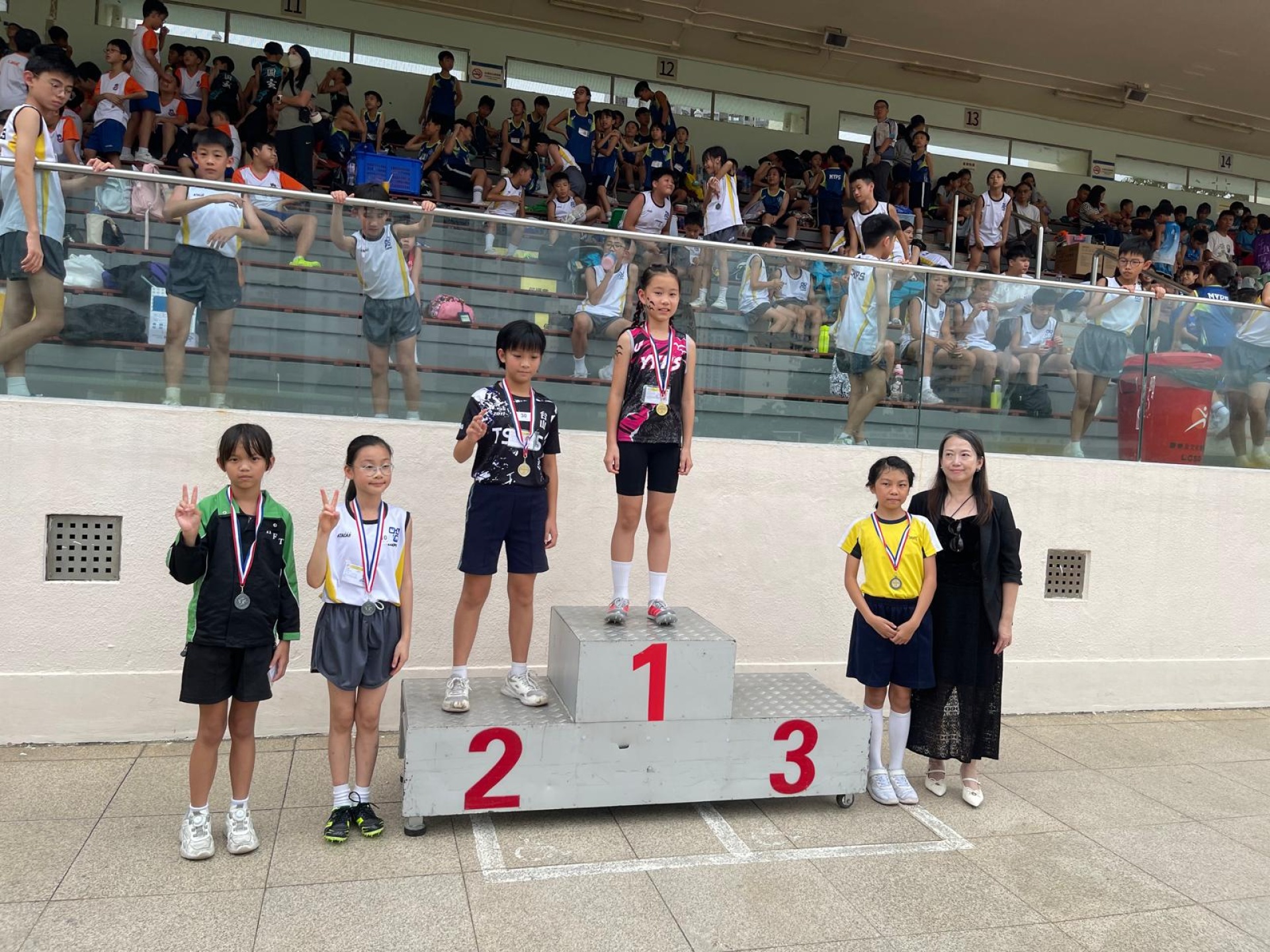 ‧ 6B林軒彤女甲100米冠軍,並以12.77秒打破全港小學校際田徑比賽紀錄