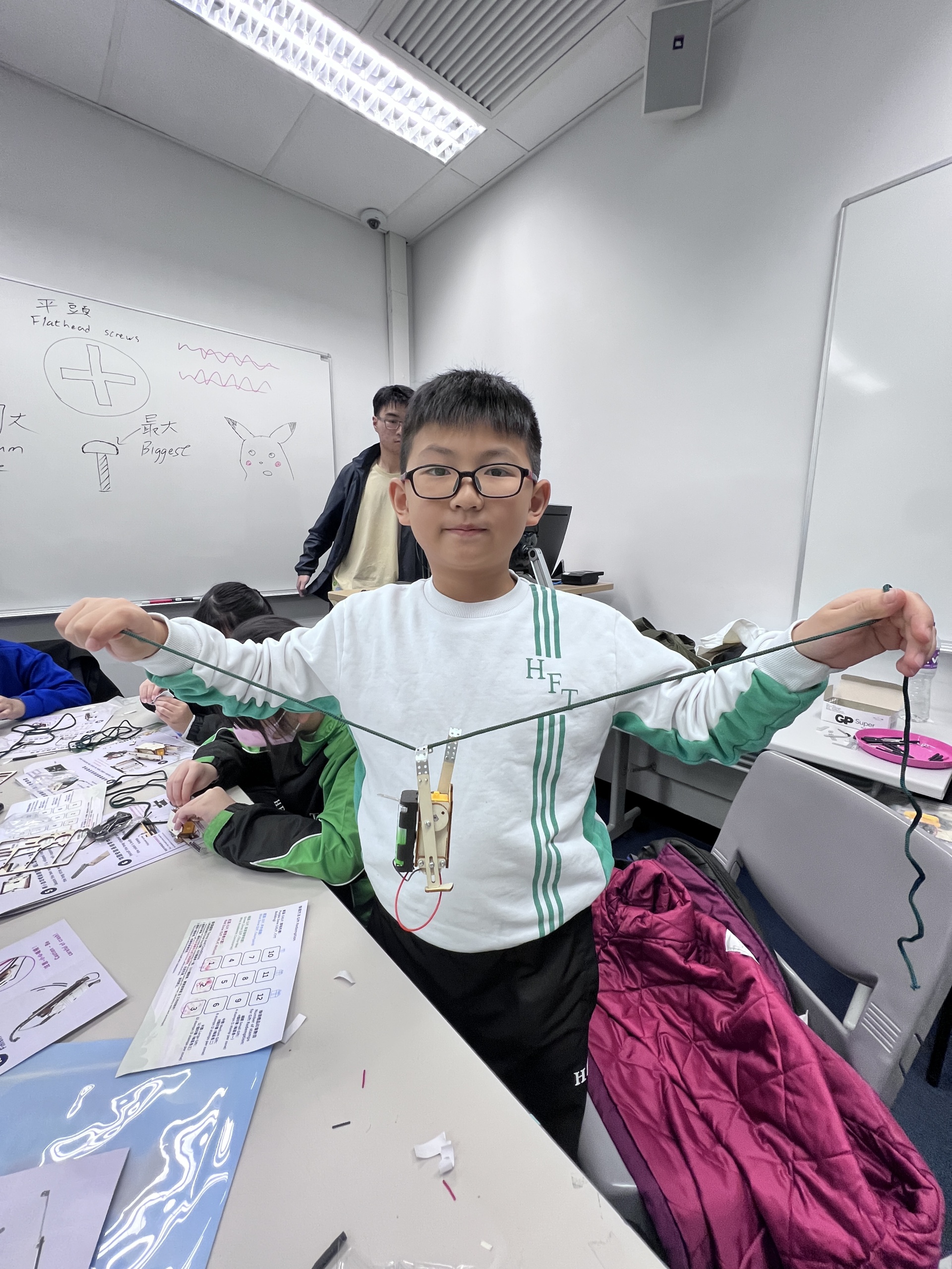 最受歡迎一定是親手製作爬繩機械人!每位同學都投入組裝,完成後更把自己的作品視作寶貝般捧着,滿滿成就感!