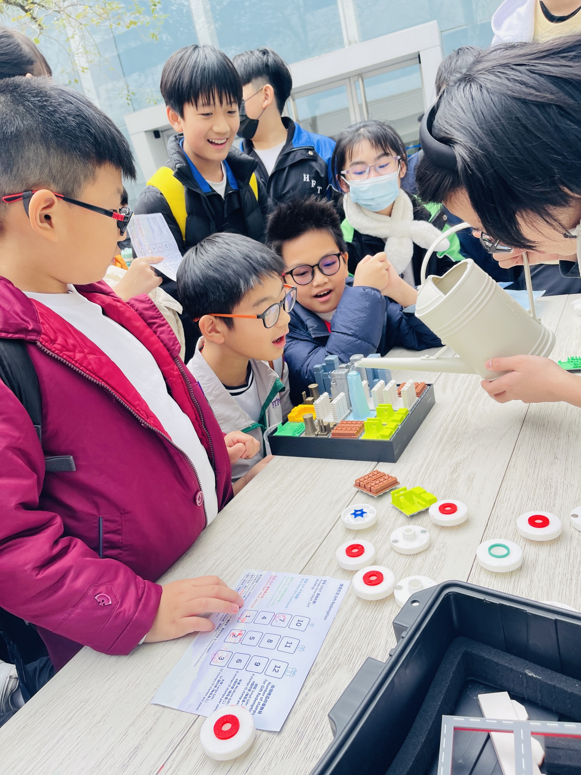學生在互動遊戲攤位體驗不同科技、動手做小實驗,使用 Micro:bit 挑戰各種任務,一邊玩一邊學 ,學習不同科學知識。
